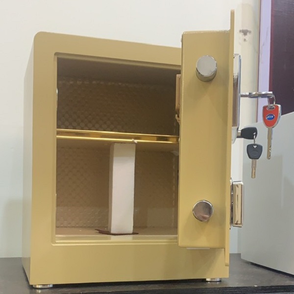 - Két được chia làm 02 ngăn.Giúp bạn có không gian thoải mái để cất giữ các giấy tờ, hồ sơ quan trọng hay các đồ trang sức, tiền vàng, các vật có giá trị cao.