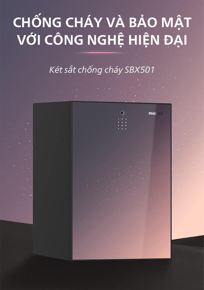 Két sắt chống cháy Philips SBX501 là một sản phẩm két sắt thông minh, tích hợp nhiều công nghệ bảo mật hiện đại và cũng được thiết kế theo phong cách khác biệt hoàn toàn so với các “đàn anh” trước đó của thương hiệu Két Sắt Philips. SBX501 với nhiều ưu điểm nội bật từ khả năng chống cháy đạt tiêu chuẩn UL 350, một tiêu chuẩn được áp dụng trên 100 quốc gia. Cùng với đó là cách thức hoạt động của hệ thống khóa thông minh trên SBX501 bao gồm bàn phím số có khả năng ngụy trang, công nghệ vân tay FPC của Thụy Điển. Tất cả tạo nên một sản phẩm két sắt thông minh chống cháy hoàn hảo như SBX501.