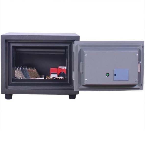 An toàn chống cháy, thân két đúc đặc 100%, hèm cửa dạng tam cấp giúp tăng khả năng chống cháy, chống phá. Két sắt có chốt to tự động ăn sâu vào lòng két.