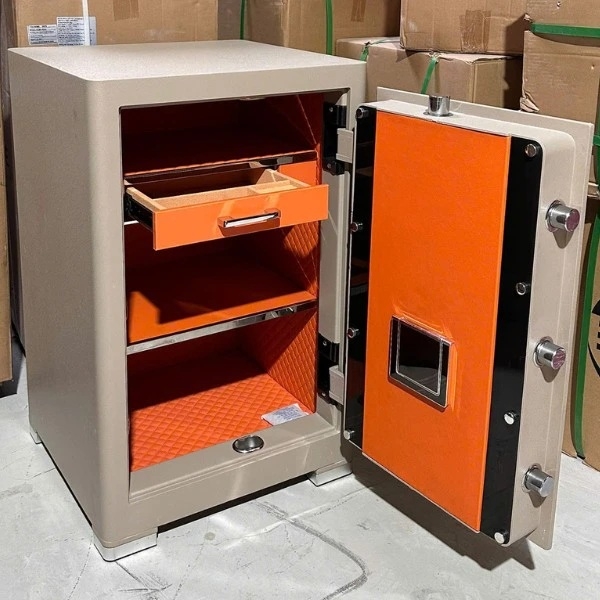 - An toàn - chống cạy phá : Kết cấu thép carbon siêu cứng nguyên tấm -Thân vỏ thép tấm dày 6mm 2 lớp; cánh cửa dày 10mm; chốt thép tầm phi 32. Có thể bắt ốc vào tường chống di chuyển.