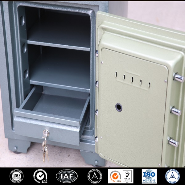 - Chốt khóa bằng thép cứng phân bố xung quanh 4 cạnh của cánh két chống cạy phá đảm bảo an toàn