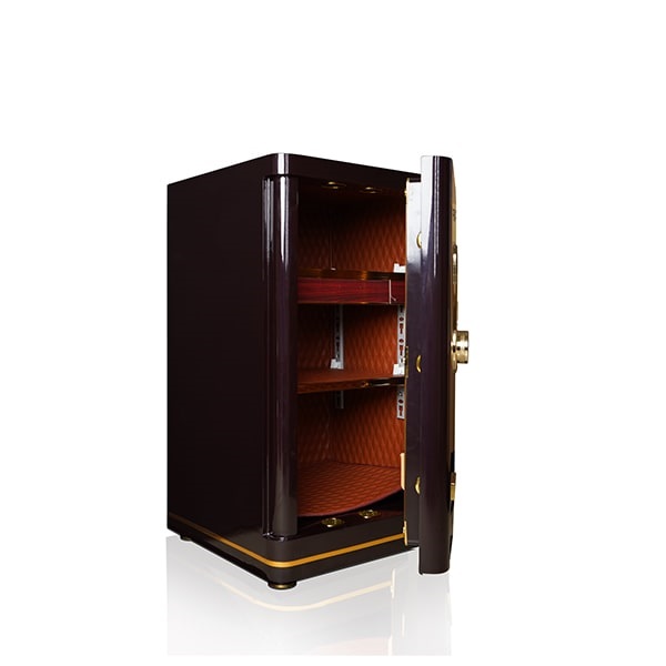 - Bên trong két được sơn tĩnh điện chống trầy xước và bao phủ vách ngăn và xung quanh thành két là một lớp da trần cao cấp. Màu nâu tạo cảm giác sang trọng, sạch sẽ cho nội thất.