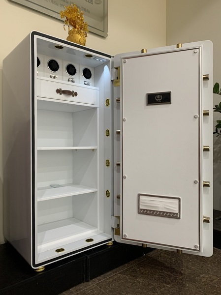 - Két được chia làm nhiều ngăn gồm ngăn để tài liệu, ngăn để trang sức.Giúp bạn có không gian thoải mái để cất giữ các giấy tờ, hồ sơ quan trọng hay các đồ trang sức, tiền vàng, các vật có giá trị cao.