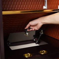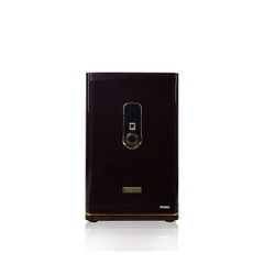 - Bảng khóa vân tay điện tử được thiết kế viền kim loại vàng, màn hình cảm ứng mặt kính cường lực cao tạo sự sang trọng, đẳng cấp cho két sắt. Đặc biệt, nút quét vân tay được trang bị tính năng quét vân tay 360 độ. Quét nhanh, nhạy và chính xác tuyệt đối. Màn hình kính cường lực rất lớn kết hợp đèn Led nhanh và nhạy, hiện thị rõ ràng, thao tác dễ dàng trong phòng mà không cần bật đèn. Chỉ cần chạm vào màn hình là sẽ tự động sáng. Hiện ra nút nhập vân tay hoặc bàn phím nhập mật khẩu. Và bạn chỉ cần nhập vân tay hay mật khẩu đã được cài sẵn là có thể mở được két. Tay nắm mạ vàng được chế tạo hình tròn với thiết kế âm xuống khi không sử dụng tạo thành 1 khối tổng thể cùng với mặt kính cường lực vân tay mã số vô cùng đẹp mắt và sang trọng.