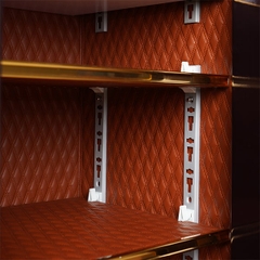 - Bên trong két được sơn tĩnh điện chống trầy xước và bao phủ vách ngăn và xung quanh thành két là một lớp da trần cao cấp. Màu nâu tạo cảm giác sang trọng, sạch sẽ cho nội thất.