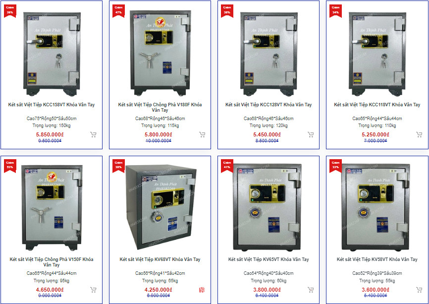 Két Sắt Vân Tay Việt Tiệp là dòng két sắt sản xuất trong nước được sử dụng nhiều nhất hiện nay. Với tiêu chí giá thành phải chăng, đảm bảo an toàn bảo mật, chống cháy phù hợp với đa số thị hiếu của khách hàng cá nhân, gia đình, cơ quan, văn phòng,...Đa dạng kích thước, trọng lượng từ size mini đến size trung đến size đại,