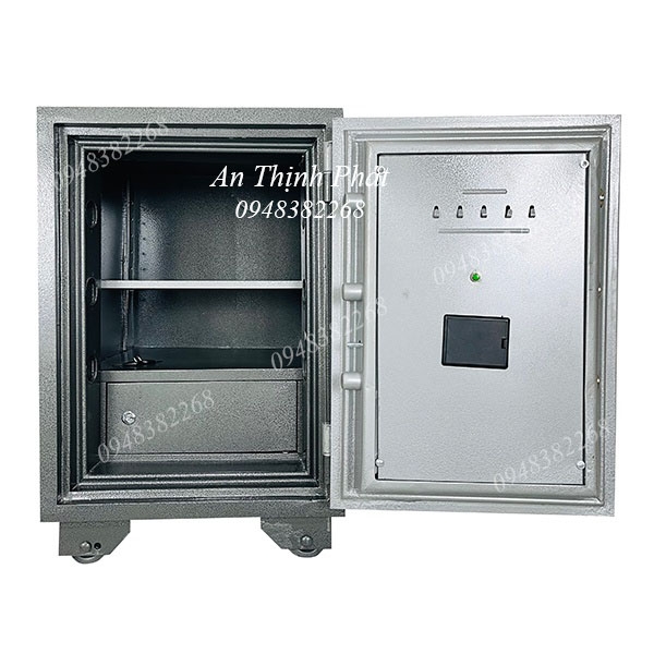 - Két sắt vân tay việt tiệp bên trong có 2 ngăn. Có 1 ngăn khóa kéo riêng biệt và 1 khoang để tài liệu.