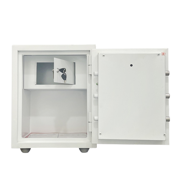 - Két sắt được bảo mật bằng khóa điện tử bấm số + bộ chìa khóa cơ xoay + 1 bộ khóa dự phòng.