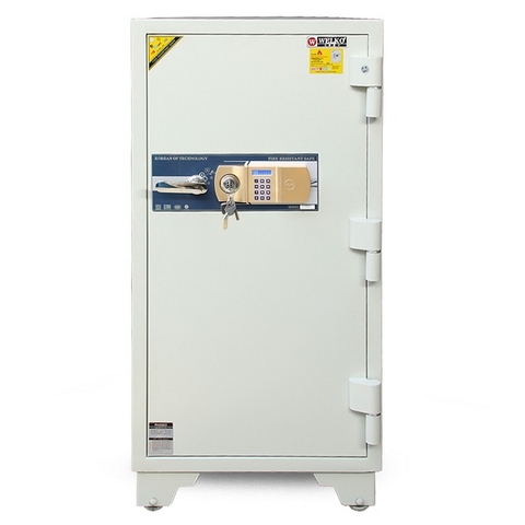 An toàn chống cháy, thân két đúc đặc 100%, hèm cửa dạng tam cấp giúp tăng khả năng chống cháy, chống phá. Két sắt có chốt to tự động ăn sâu vào lòng két.